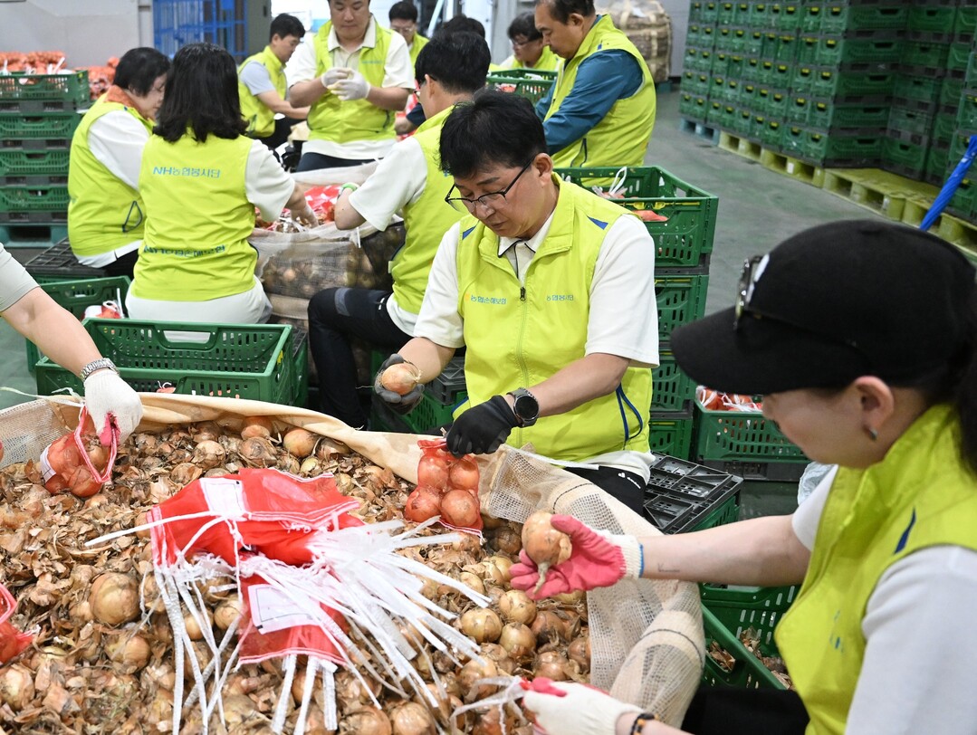 송춘수 대표이사를 비롯한 농협손해보험 임직원 30여 명, 콜센터 협력업체 임직원 10여 명 등 40여 명이 참여해 양파·감자 분류와 포장을 도왔다.
