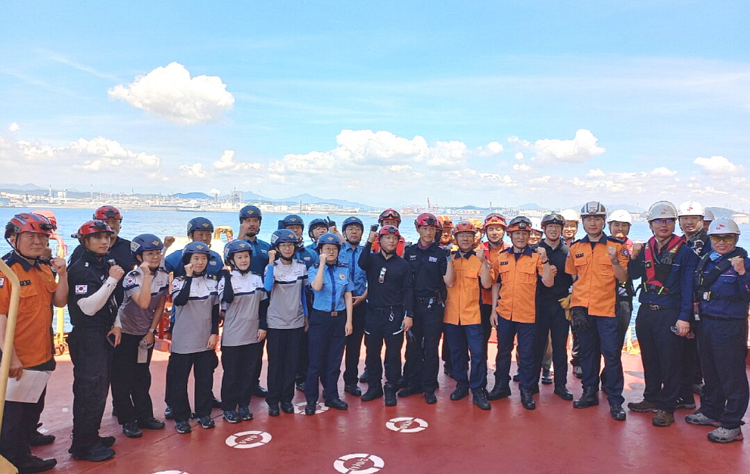 | ▲ 지난 2023년 8월 울산항만공사 직원들이 소방·해경 구조대원들과 함께 원유운반선 승선체험 행사를 갖고 있는 모습 [울산항만공사 제공] |