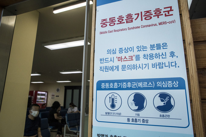 중동호흡기증후군(MERS·메르스) 확진 환자가 3년여만에 발생한 가운데 9일 서울 종로구 서울대학교병원 응급의료센터 앞에 메르스 관련 안내문이 붙어있다. 지난 8일 질병관리본부에 따르면 쿠웨이트를 다녀온 A씨(61)가 메르스 확진 판정을 받아 서울대병원 국가지정격리병상에서 격리 치료를 받고 있다.