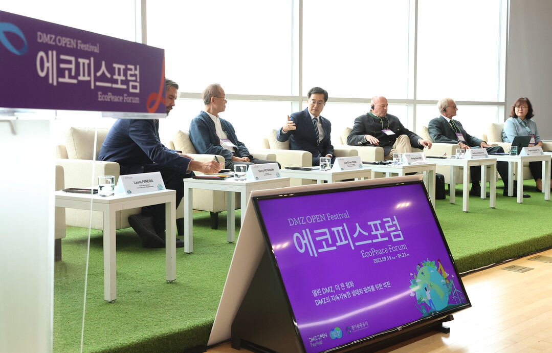 경기도가 주최하고 경기관광공사가 주관하는 이번 포럼은 지난해까지 ‘디엠지 포럼’이란 이름으로 열렸으나 올해는 기후위기 해소와 각자도생의 국제질서 극복을 핵심 과제로 보고 생태(에코), 평화를 합쳐 ‘에코피스포럼’으로 명칭을 바꿨다.