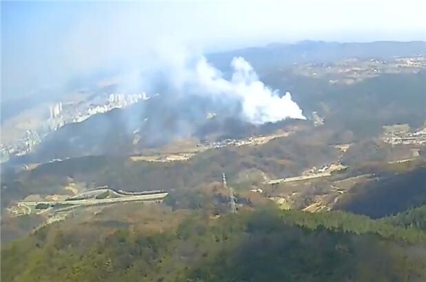 산림·소방당국은 헬기 6대, 차량 21대, 인력 63명을 동원해 신고접수 1시간 42분 만인 오후 3시 30분께 주불을 잡았다. 피해 면적은 약 1㏊(1만㎡)로 추산된다.