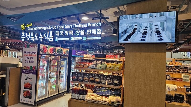 충북도는 한류 열풍으로 K-Food 1위 수출권역으로 부상한 동남아시장 공략을 위해 태국 방콕에 8일 충북농식품 상설판매장을 개장했다.