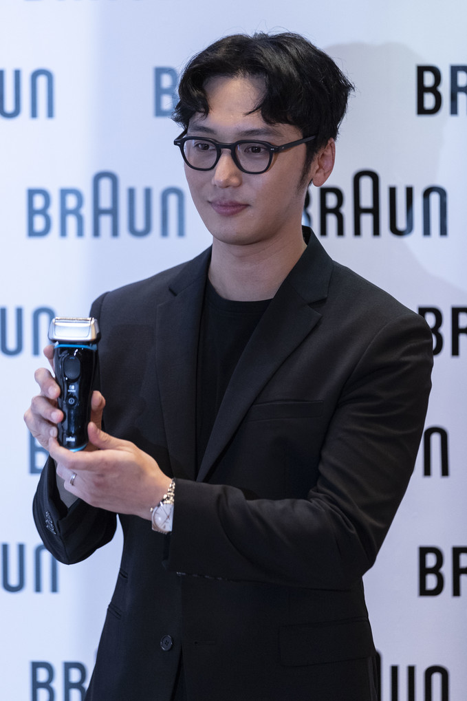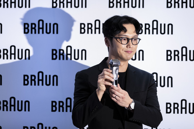 브라운 'NEW 시리즈 9 & 8 면도기' 출시회가 6일 오후 서울 강남구 씨네씨티빌딩에서 열린 가운데 배우 변요한이 S9 제품을 들고 포즈를 취하고 있다.