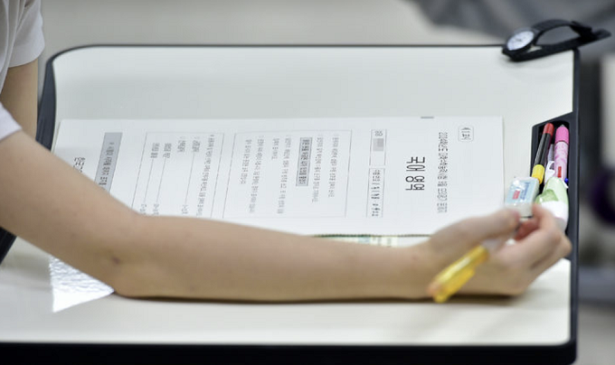 | ▲ 2024학년도 대학수학능력시험 9월 모의평가가 실시된 지난달 6일 오전 대구 수성구 대구여자고등학교에서 고3 수험생이 시험을 준비하고 있다. [뉴시스] |