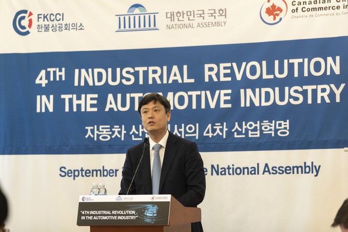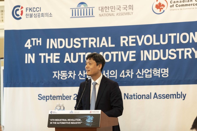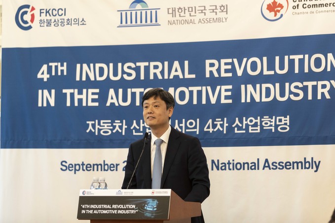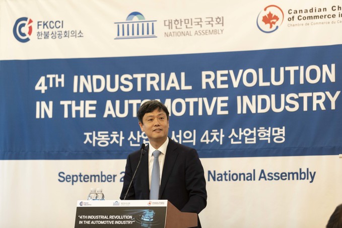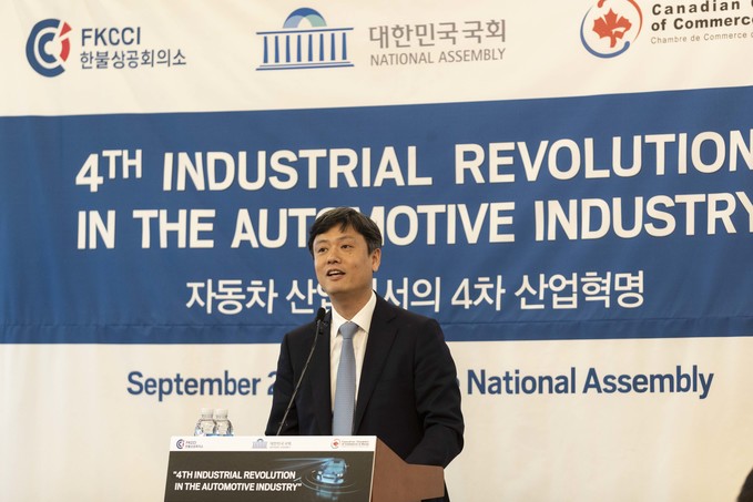 장병규 대통령직속 4차 산업혁명위원회 위원장이 23일 오후 서울 여의도 국회에서 열린 '자동차 산업에서의 4차 산업혁명'에 참석해 기조연설을 하고 있다.