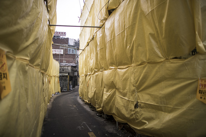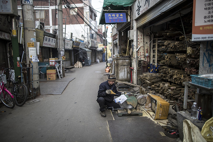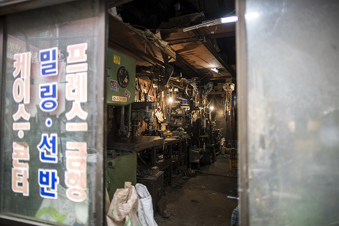 노란 비닐과 공사장에서만 볼 것 같은 단단한 지지대들에 쌓인 건물들. 그렇게 부서지고 있던 곳은 탱크도 만들 수 있다는 말이 나올 만큼 우리나라 제조업의 중심지였던 서울 청계천 공구거리다.