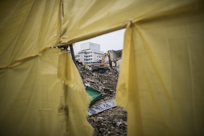 "청계천 상인과 가족의 생존권을 지켜줘야 한다", "서울시는 상인들과 대화에 나서고 상가입주 대책을 마련하라"는 비대위의 외침이 무너진 건물들 사이로 들려온다.