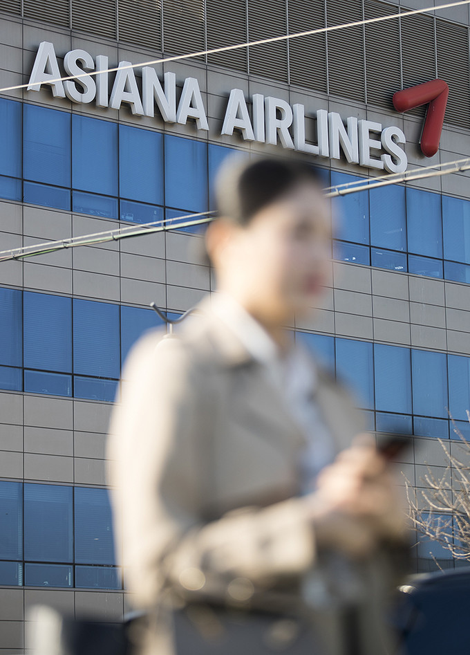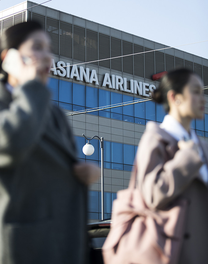15일 오후 서울 강서구 아시아나항공 본사에서 관계자들이 드나들고 있다.