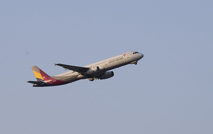 15일 오후 서울 강서구 상공에 아시아나항공 여객기가 이륙하고 있다.