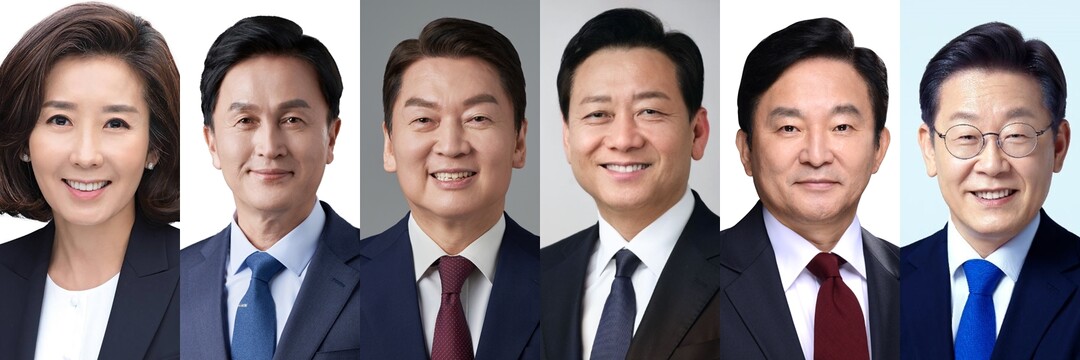 ▲ 국민의힘 나경원(왼쪽부터), 더불어민주당 류삼영 후보(이하 서울 동작을), 국민의힘 안철수, 더불어민주당 이광재 후보(이하 경기 성남분당갑), 국민의힘 원희룡, 더불어민주당 이재명 후보(이하 인천 계양을) [중앙선거관리위원회 제공] |