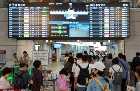 이날 오후 1시께 점심시간이 지나면서 동서울종합터미널에도 사람들이 몰려들었다. 귀성객들은 저마다 목적지는 다르지만 고향에 간다는 설레는 마음으로 버스 시간표를 확인했다.