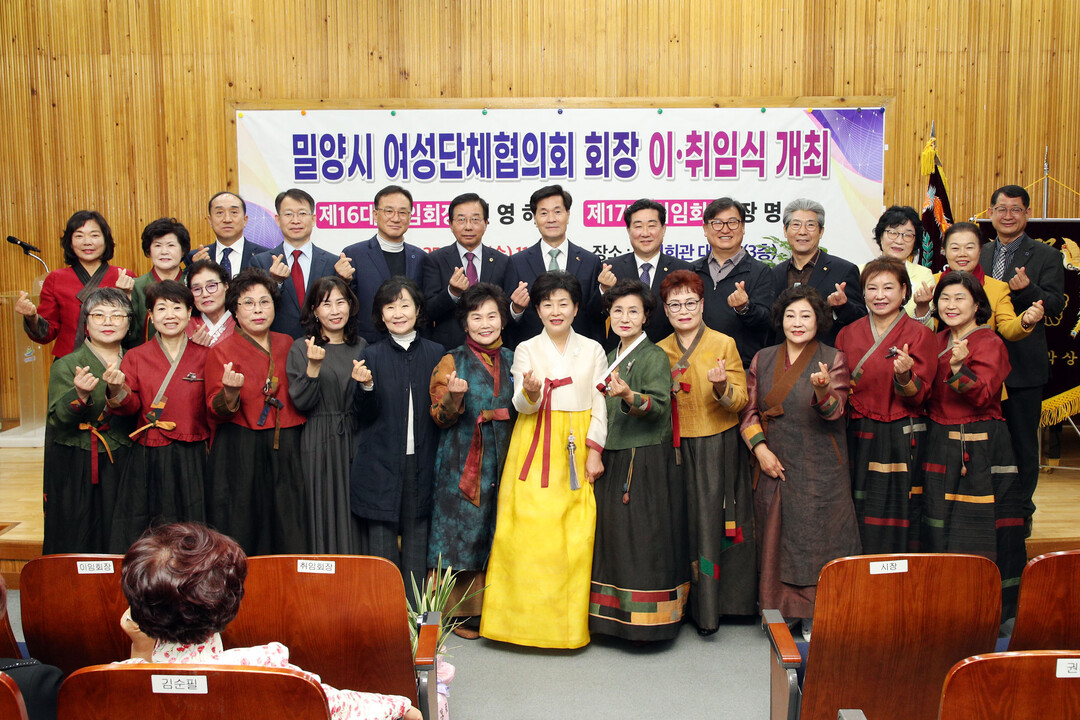 경남 밀양시여성단체협의회는 26일 여성회관 대강당에서 제17대 장명희 회장 취임식을 가졌다. 행사에는 안병구 시장, 허홍 시의회 의장, 회원 등 100여 명이 참석했다.