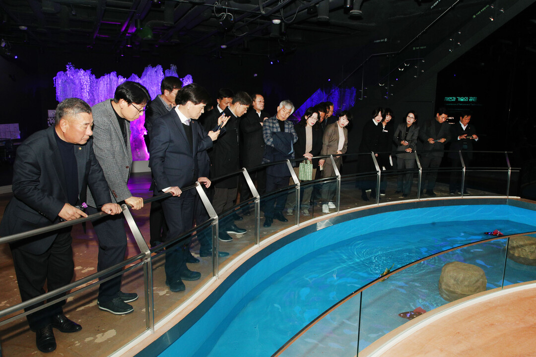 | ▲ 안병구 시장이 19일 기관·단체장 회의 참석자들과 네이처에코리움 시설을 견학하고 있다. [밀양시 제공] |