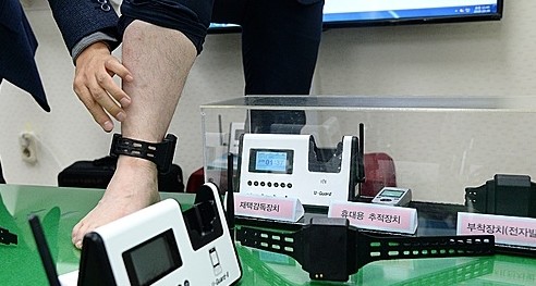 ▲ 전자발찌 착용 시연 모습 [뉴시스]