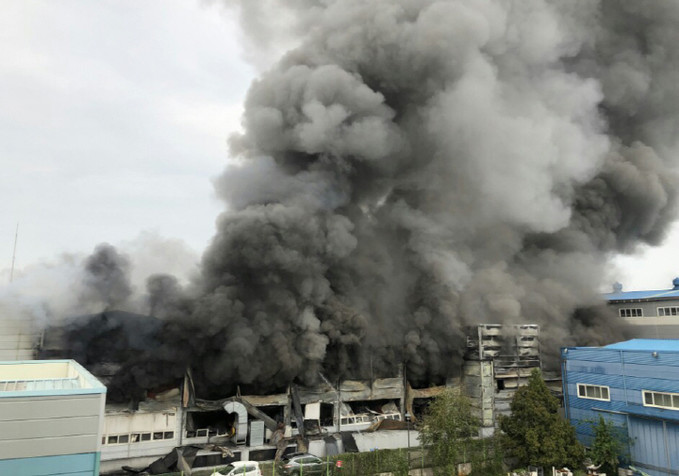 19일 오후 1시 20분쯤 경기 화성 향남읍 싸이노스 반도체 세정공장에서 불이 났다. 소방당국은 대응 2단계를 발령하고 헬기를 동원해 진화에 나섰다.
