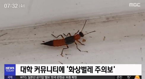 MBC에 따르면 지난 29일 전북 완주에 위치한 대학교의 인터넷 커뮤니티에 기숙사에 '화상벌레'가 있다며 주의하라는 내용의 게시물이 올라왔다. 이후 온라인을 통해 서울, 세종, 김해, 천안 등에서도 벌레가 출몰했다는 글이 연이어 게재되면서 화상벌레가 공포의 대상이 되고 있다.