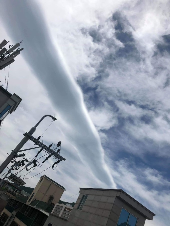 28일 오전 대구와 경북 경산, 경남 밀양 등 영남 지역 곳곳에 보기 드문 두루마리 형태의 구름이 나타나 눈길을 끌었다.
