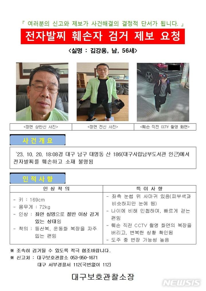 대구보호관찰소는 지난 20일 오후 6시경 대구 남구 대명동 소재 '앞산'에서 전자발찌를 훼손한 후 소재 불명 돼 공개 수배한다고 밝힌 바 있다.