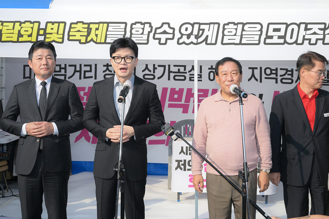 한동훈 국민의힘 대표가 8일 최민호 시장의 단식 현장을 찾아 2026 세종 국제정원도시박람회 성공 개최를 위해 여당 차원의 모든 노력을 다하겠다고 약속했다.