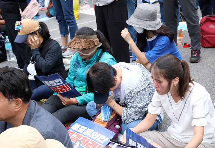 | ▲ 더불어민주당 이재명 대표 지지자들이 21일 오후 국회 앞 도로에서 농성을 하다 이 대표 체포동의안이 가결되자 눈물을 흘리고 있다. [뉴시스] |