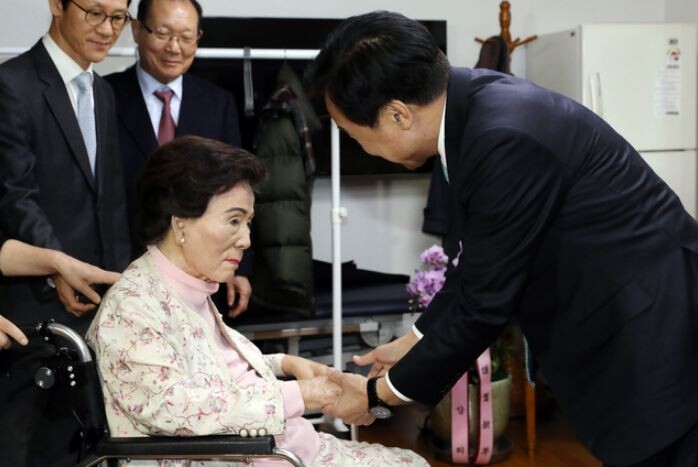 | ▲ 바른미래당 손학규 대표가 새해 첫날인 지난 2019년 1월1일 오후 서울 상도동 고 김영삼 전 대통령의 사저를 찾아 손명순 여사에게 새해 인사를 하고 있다. [뉴시스] |