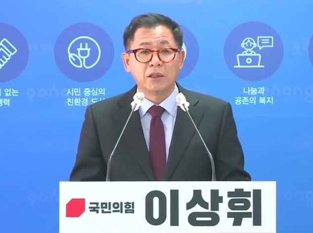 | ▲ 이상휘 전 청와대 춘추관장이 14일 경북 포항시청 브리핑룸에서 2024년 4월 제22대 국회의원 선거에 포항남·울릉지역구 출마를 선언하고 있다. [이상휘 전 춘추관장 페이스북 켑처] |