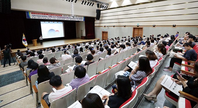 ▲ 지난해 8월 열린 ‘대학 수시 학생부종합전형 최종마무리 입시설명회’에서 입학사정관이 강연을 펼치고 있다. [뉴시스]