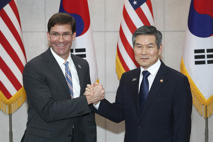 9일 국방부에 따르면 에스퍼 장관은 이날 정경두 장관과의 한미 국방장관 회담에서 중동지역의 중요성과 호르무즈 해협에서 항행의 자유 필요성을 강조하며 국제사회의 협조를 당부했다.