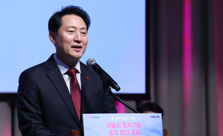 ▲ 오세훈 서울시장이 12일 오후 서울 중구 서울시청에서 열린 북 EMP 위협에 따른 서울시 도시기능 유지 방안 포럼에서 인사말을 하고 있다. [뉴시스]