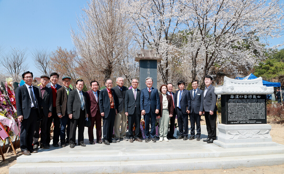 ▲ 오태완 군수 등이 박진목 의사 기의비 이전 건립 기념촬영[의령군 제공]