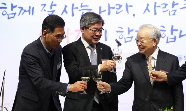 8일 고용노동부가 연 '2019년 노사정 신년인사회'에서 노동계와 경영계 대표는 사회적 대화의 중요성을 내세우면서도 여러 현안을 둘러싼 갈등을 드러냈다.