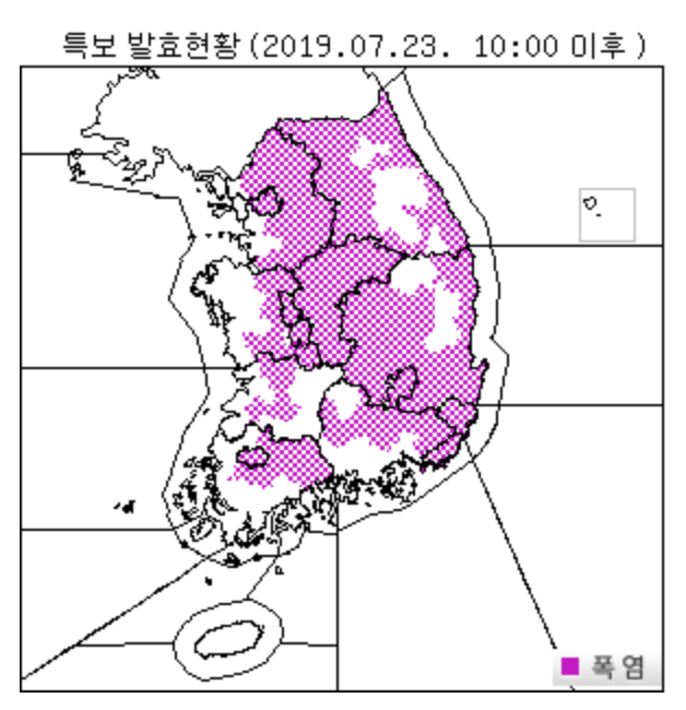 이미 서울, 대전, 대구, 세종, 울산, 강원 일부, 충청 일부, 경상 일부, 전라 일부에는 폭염주의보가 발효된 상태다.