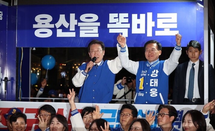 이 대표는 이어 이날 저녁 용산역 앞에서 열린 당 차원의 마지막 유세에 참석해 피날레를 장식했다. 용산 유세는 대통령실을 겨냥해 정권심판론을 부각하자는 취지였다.