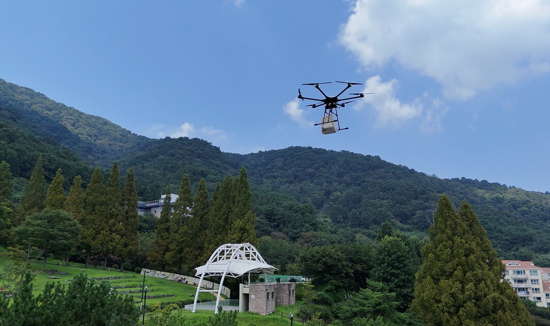 | ▲ 만날근린공원 드론 배송 모습 [창원시 제공] |