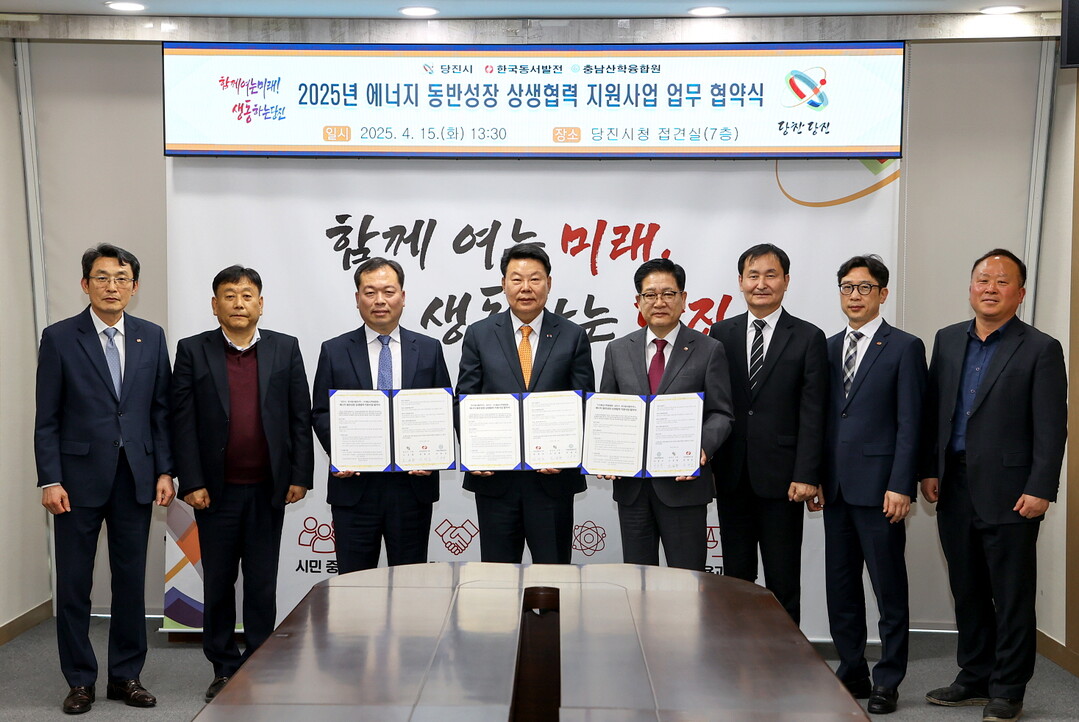 한국동서발전은 15일 오후 충남 당진시청에서 당진시(시장 오성환), 충남산학융합원(원장 이종규)과 에너지 동반성장 상생협력 지원을 위한 업무협약(MOU)을 체결했다.