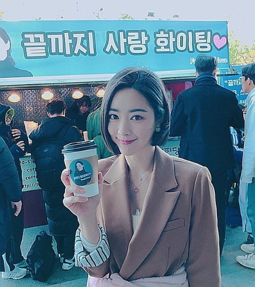 공개된 사진 속에는 커피차 앞에서 포즈를 취하고 있는 홍수아의 모습이 담겨 있다.