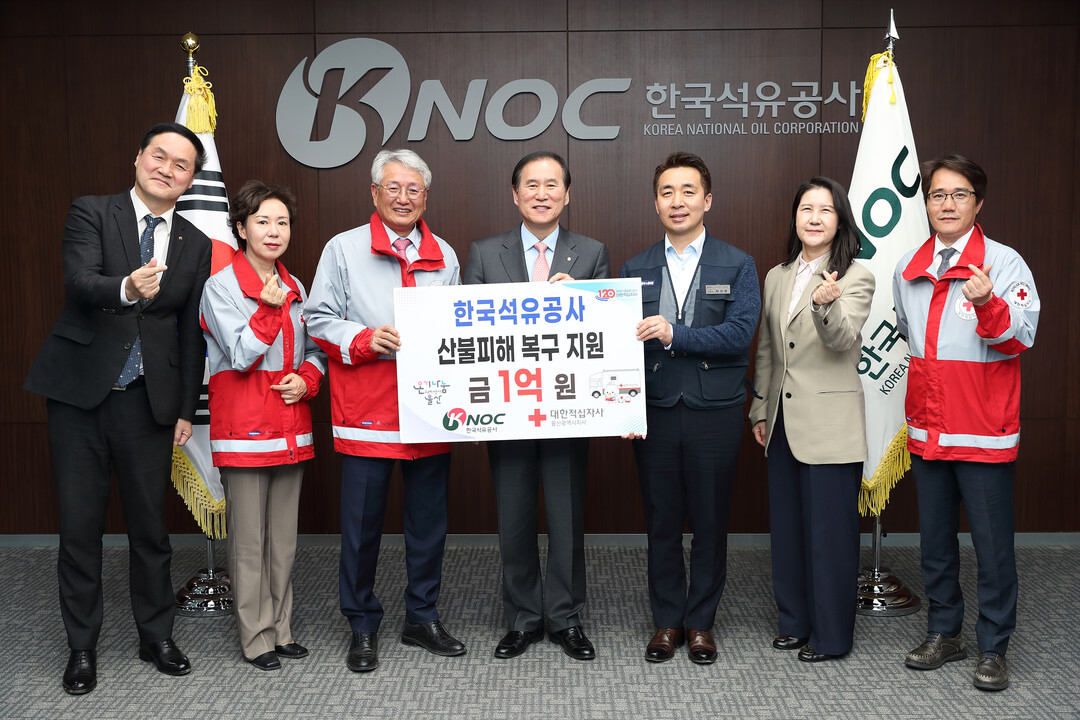 한국석유공사(사장 김동섭)는 최근 산불로 역대 최대 규모의 피해를 입은 영남지역 복구를 지원하기 위해 1억원의 성금을 대한적십자사에 전달했다.