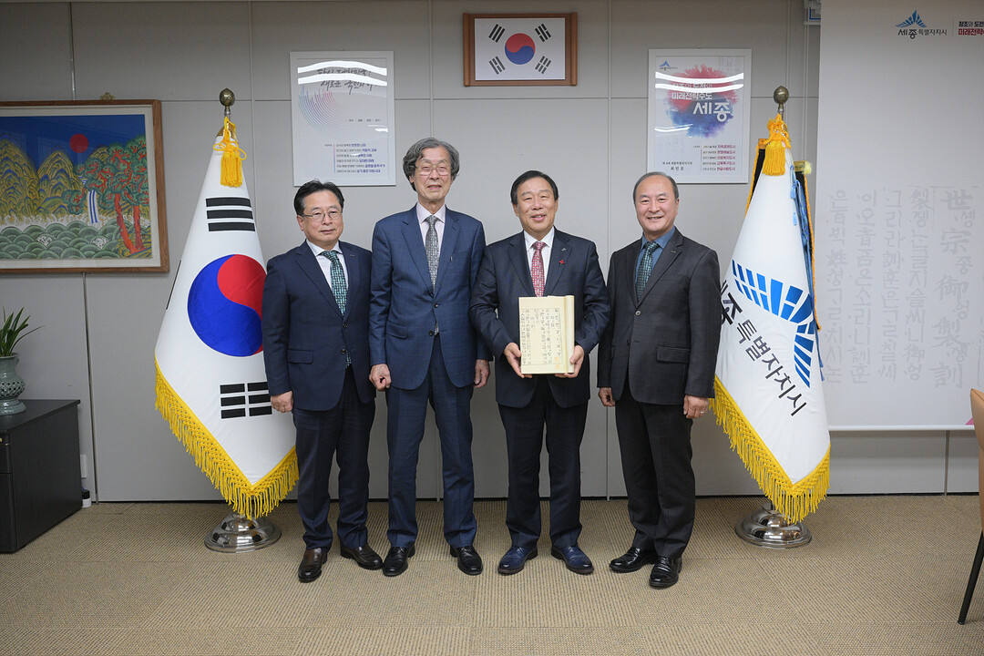 최민호 시장은 9일 집무실에서 월인천강지곡의 소장자 자격으로 교재 출판 전문기업 '미래엔' 관계자, 관련 전문가와 만나 월인천강지곡 기탁 및 세계기록유산 등재 방안을 논의했다.