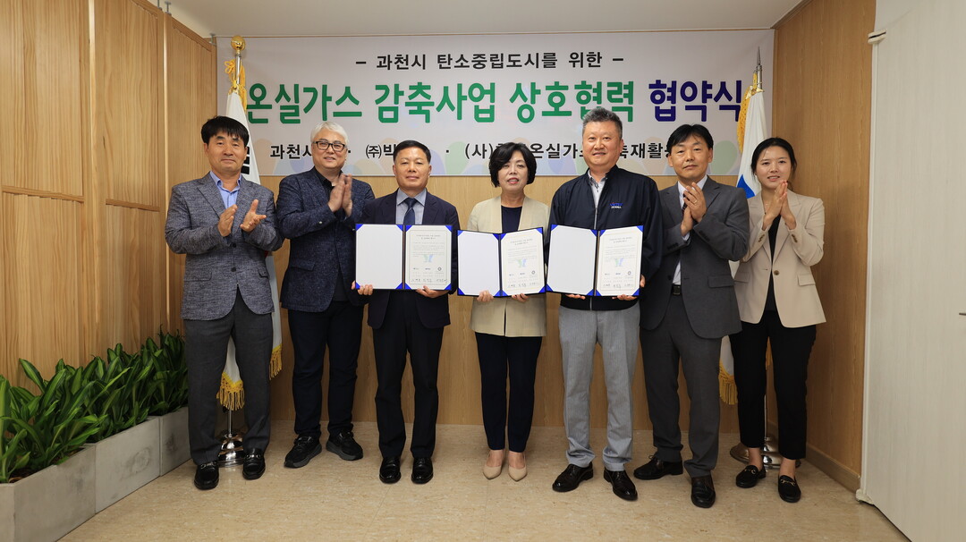 경기 과천시는 지난 23일 시장 집무실에서 (사) 한국온실가스감축재활용협회, 탄소포집기술 전문기업 ㈜빅텍스와 온실가스 감축 사업 추진을 위한 상호협력 협약을 체결했다고 24일 밝혔다..