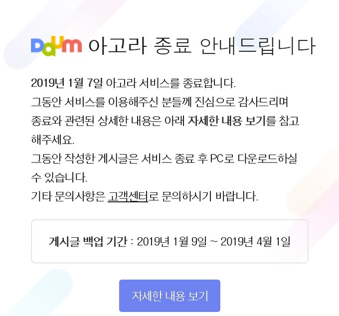 다음 아고라, 내년 1월7일 서비스 종료