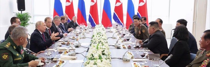▲ 조선중앙TV는 지난 13일 김정은 북한 국무위원장의 러시아 방문을 환영해 블라디미르 푸틴 러시아 대통령이 연회를 마련했다고 보도했다. [뉴시스]