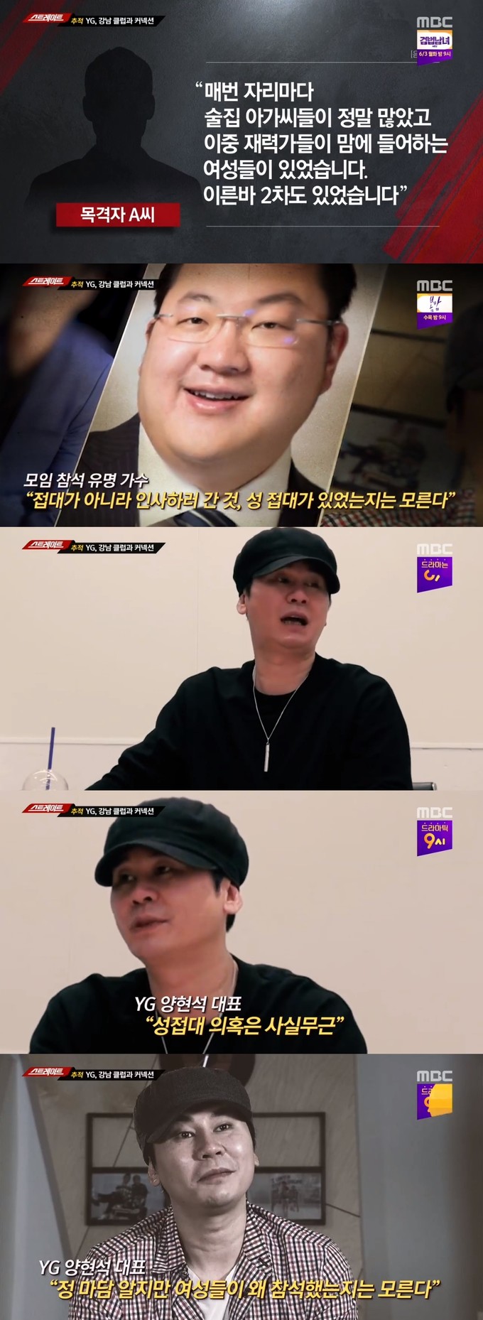 '스트레이트'에서 YG엔터테인먼트 대표 양현석의 성접대 의혹을 제기했다.