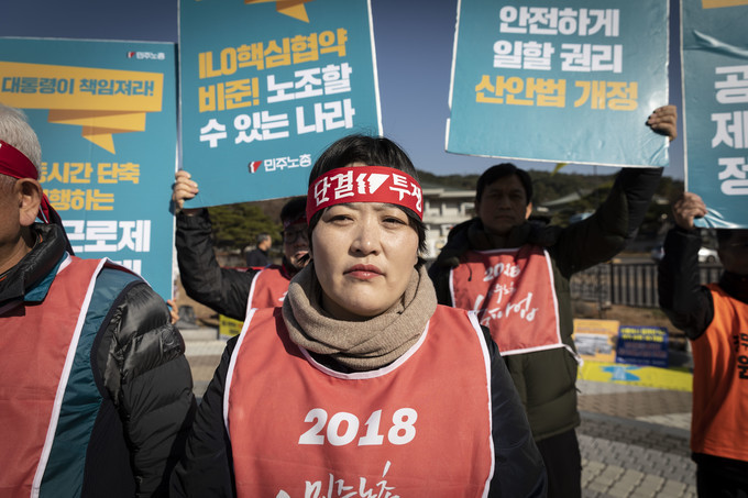 전국민주노동조합총연맹(민주노총)은 20일 청와대 앞에서 기자회견을 열어 오는 21일 예정대로 총파업에 돌입한다고 밝혔다. 민주노총은 "ILO(국제노동기구) 핵심협약 비준과 노동법 전면 개정의 시대에 노동법 개악이 줄을 잇고 있다"며 "최저임금법 개악과 탄력근로제 확대는 재벌 개혁 포기 선언"이라고 비판했다.