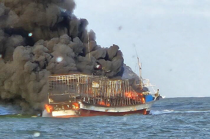 | ▲ 13일 오전 부안 왕등도 앞바다에서 부산 선적 어선에서 발생한 화재 현장 모습 [부안해양경찰서 제공] |
