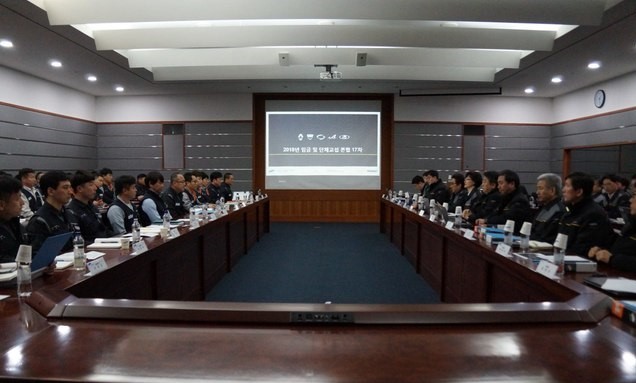 ▲ 지난 3월 6일 오전 르노삼성자동차 노동조합과 르노삼성자동차가 공장 회의실에서 18차 본 교섭을 진행하고 있다. [금속노조 부산양산지부 르노삼성자동차지회 제공]