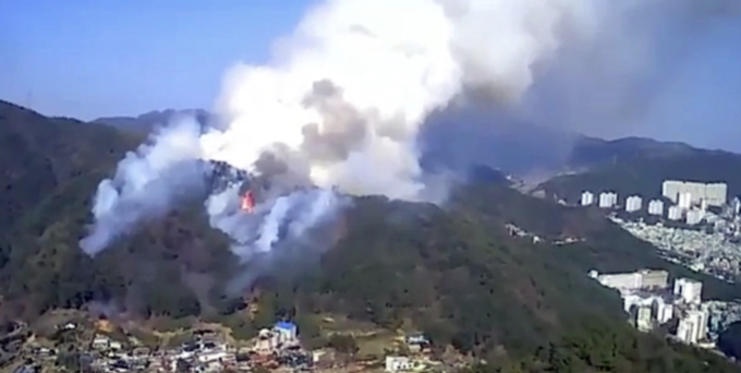 2일 오후 3시 18분께 부산 해운대구 반송동에 있는 운봉산에서 불이 났다. 부산시는 산림 피해 면적을 10ha(3만여 평)로 추정하고 있다.