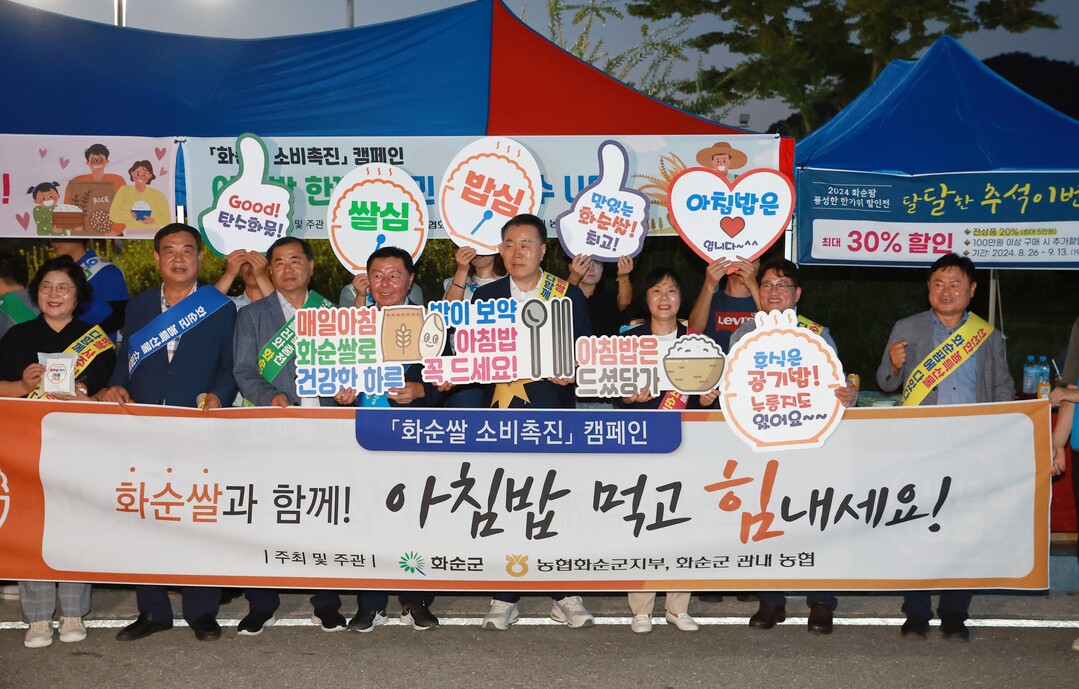 구 군수는 지난달 31일 꽃강길 음악분수 일대에서 농협 화순군지부, 화순교육지원청 등과 협력해 쌀 소비촉진 운동을 벌였으며, 12월까지 전개하기로 했다.