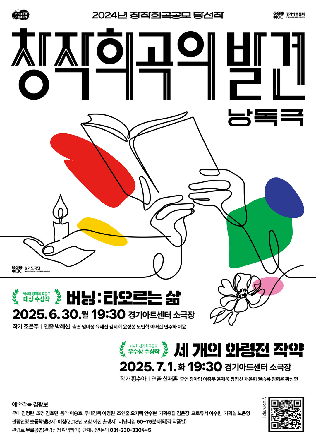 경기아트센터 경기도극단은 2024년 '제4회 창작희곡공모'를 통해 당선된 2편(대상 및 우수상)의 창작희곡 작품을 오는 30일과 다음 달 1일 2차례에 걸쳐 낭독극으로 선보인다고 17일 밝혔다.