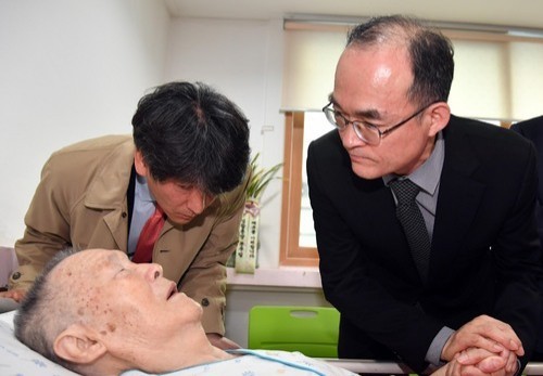▲ 2018년 3월20일 부산의 한 요양병원에 입원중인 박정기 선생을 찾아 위로하고 사과하는 문무일 당시 검찰총장. [뉴시스]