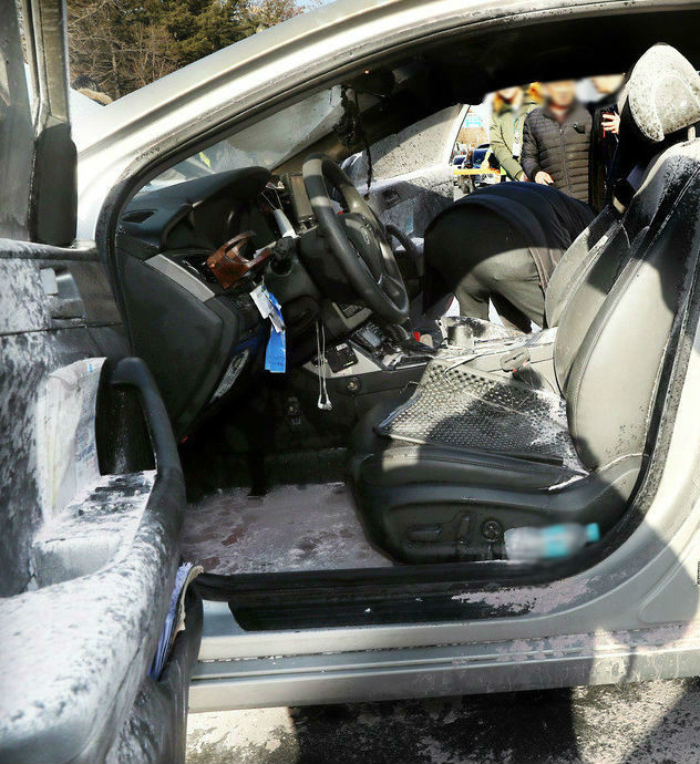 ▲ 11일 서울 여의도 국회 앞에서 택시 기사의 분신 사고 현장에서 관계자들이 택시를 살펴보고 있다. [뉴시스]